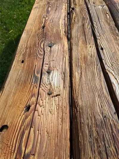 Pracujemy z drewnem które poprzez wieloletnią ekspozycję na słońce i deszcz posiada kolor i strukturę która jest unikatowa.